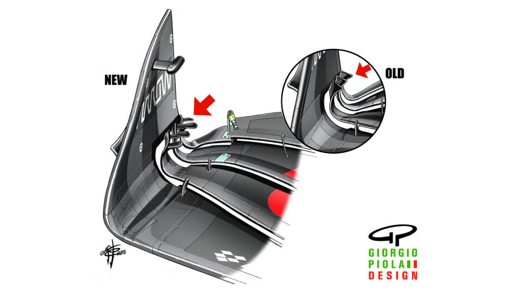 McLaren has also modified the front wing endplates to ensure greater "outwash" with a different solution from the Mercedes school, as have Ferrari, Racing Bull and in Canada also Aston…