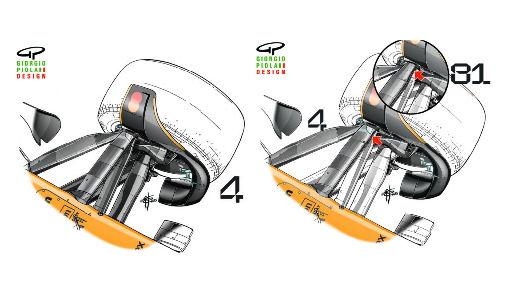 McLaren in Canada modified just for Norris the front suspension to give Lando a better feedback of the front of the car as he had in last year’s MCL38. Piastri…