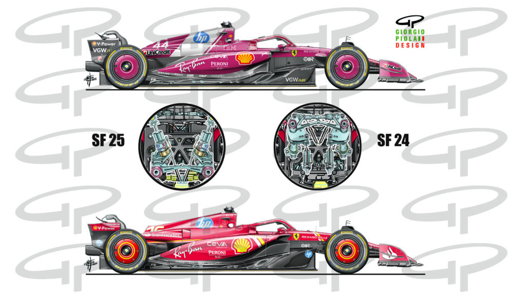 The big news in the SF 25 is the return to the pull rod front suspension instead of push rod, introduced by the Maranello-based company in 2012, abandoned in 2019…