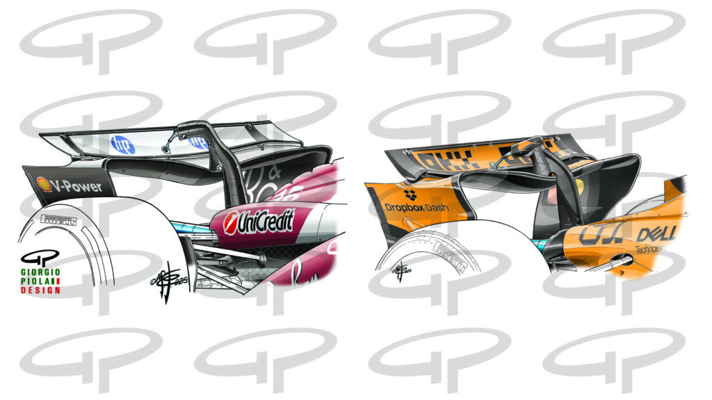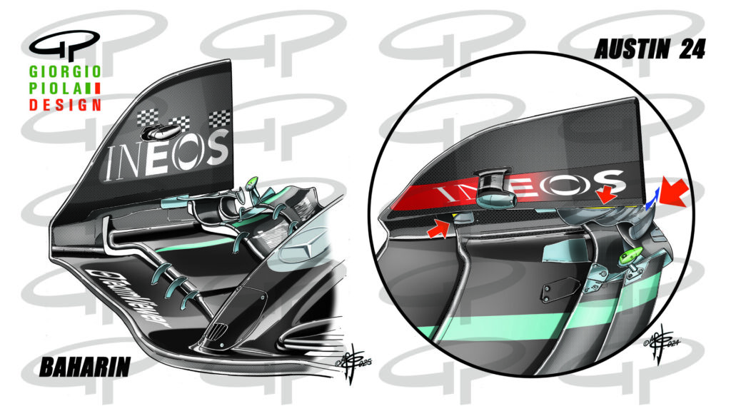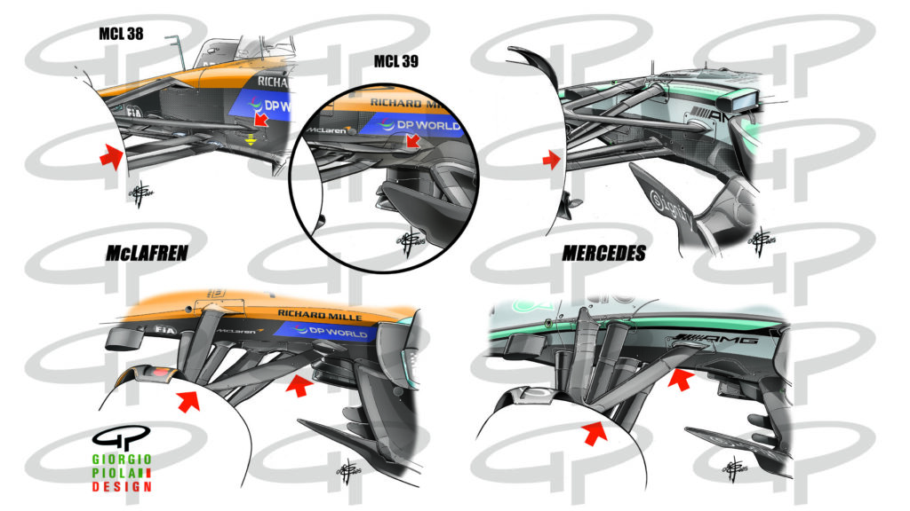 Mercedes followed McLaren in moving the steering links inside the chassis as had already been done on the MCL 38, creating among other things with the rear leg of the…