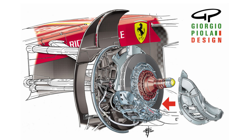Il disegno mostra gli alettoni posteriori della Ferrari, Red Bull e Mercedes usati a Las Vegas.