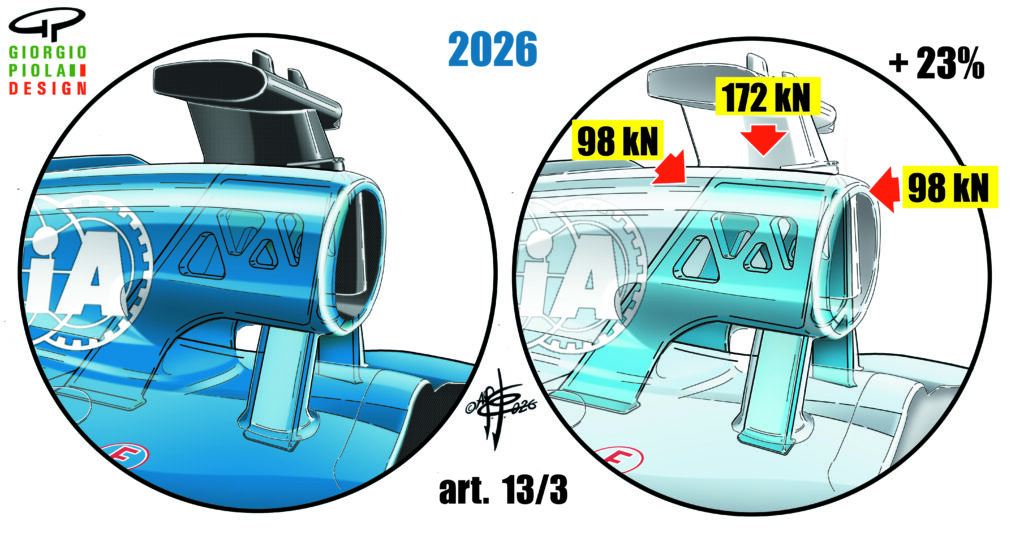 Extremely sophisticated MCL39’s intermediate drum with fresh air blowing in the lower area to better manage the temperature of the front tires. In comparison, the solution of the MCL38.