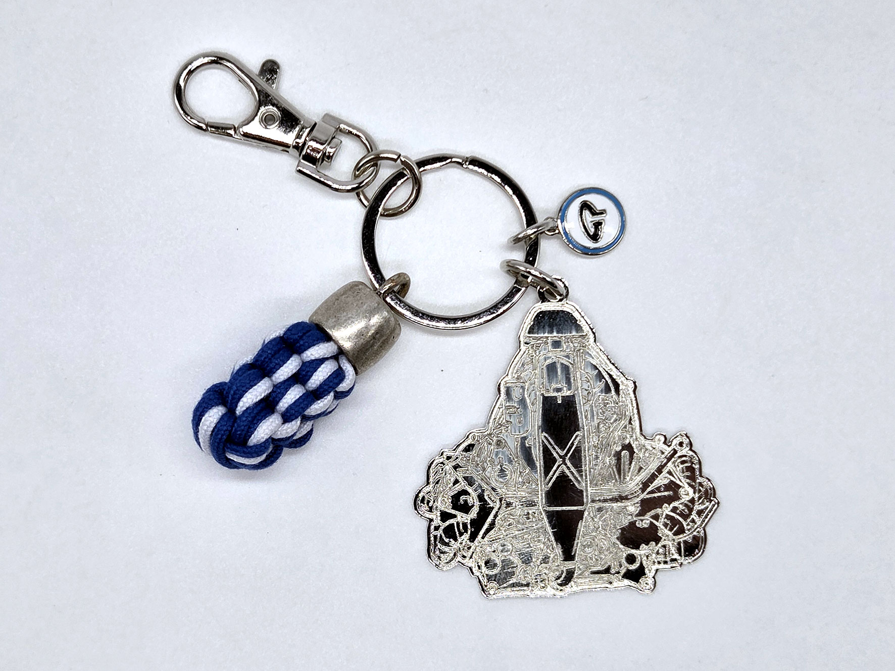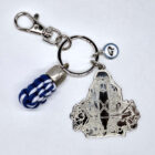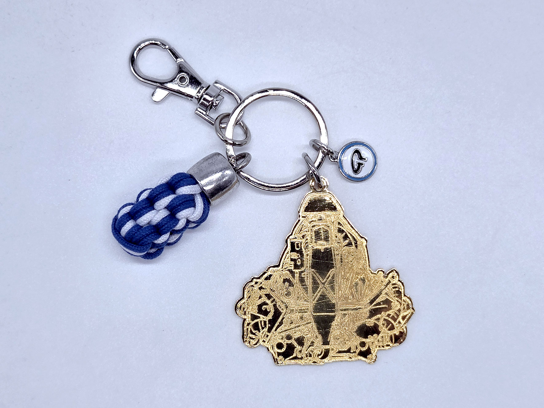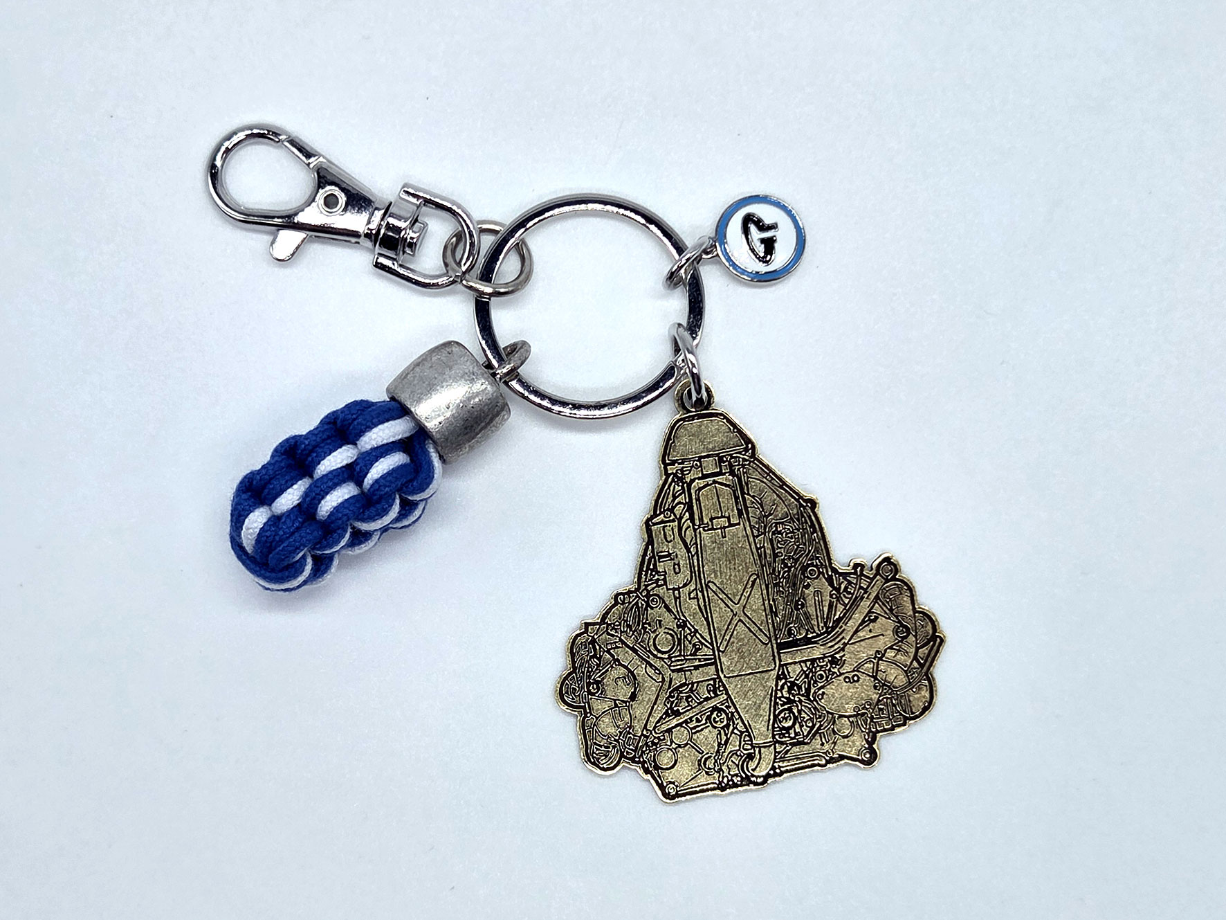 Keyring with Ferrari-style F1 engine based on Giorgio Piola’s original design and featuring Giorgio Piola’s signature on a hand-enamelled chrome medallion. The brass engine with high-quality gold-silver-antique gold-antique silver finishes measures approximately 53×50 mm. The keyring includes a carabiner so it can be easily hung anywhere and a colorful “pom-pom” detail made from eco-recycled polyester.